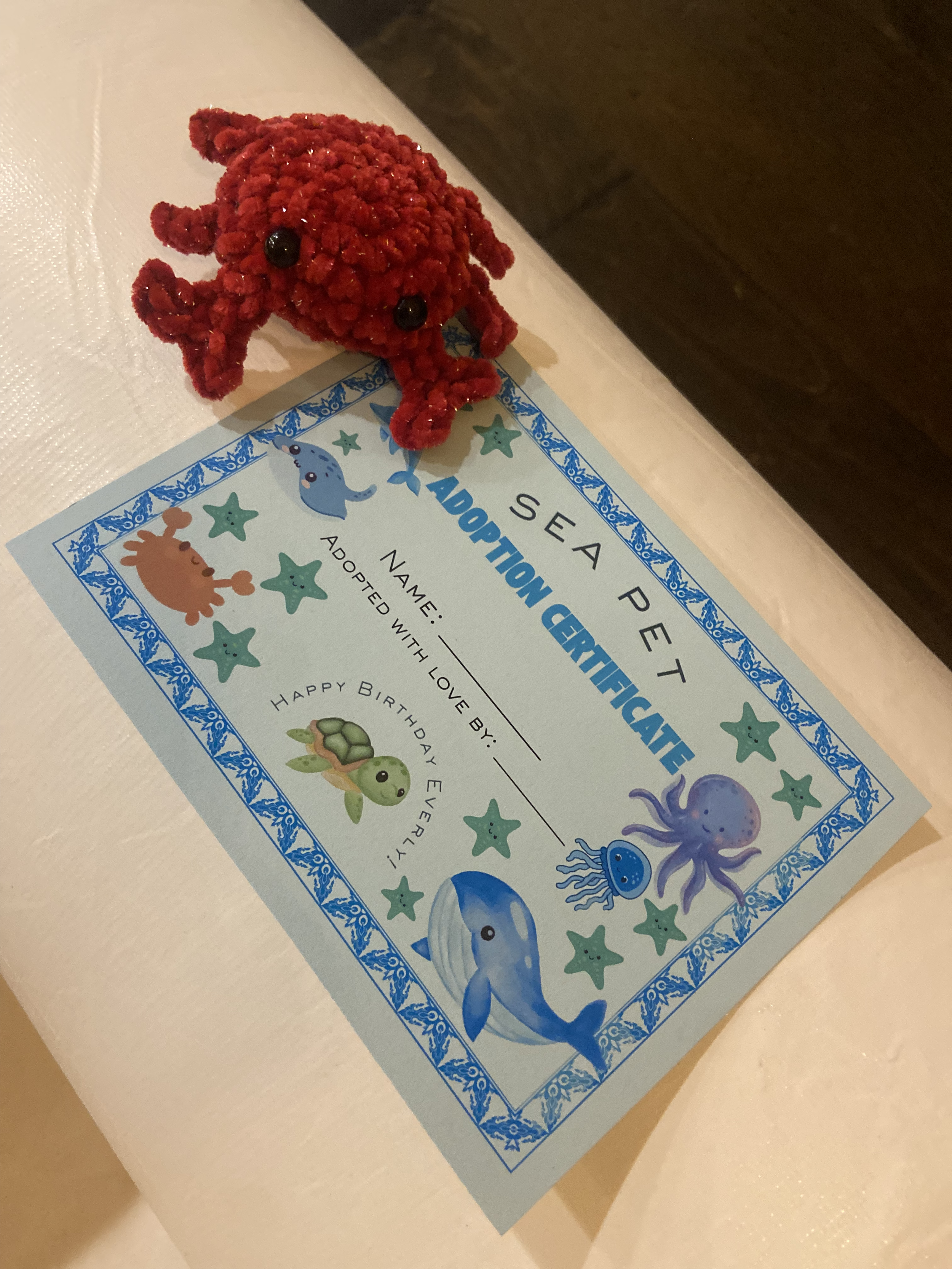 mini pet pal ( variations include crab, whale, octopus, kitten, puppy)